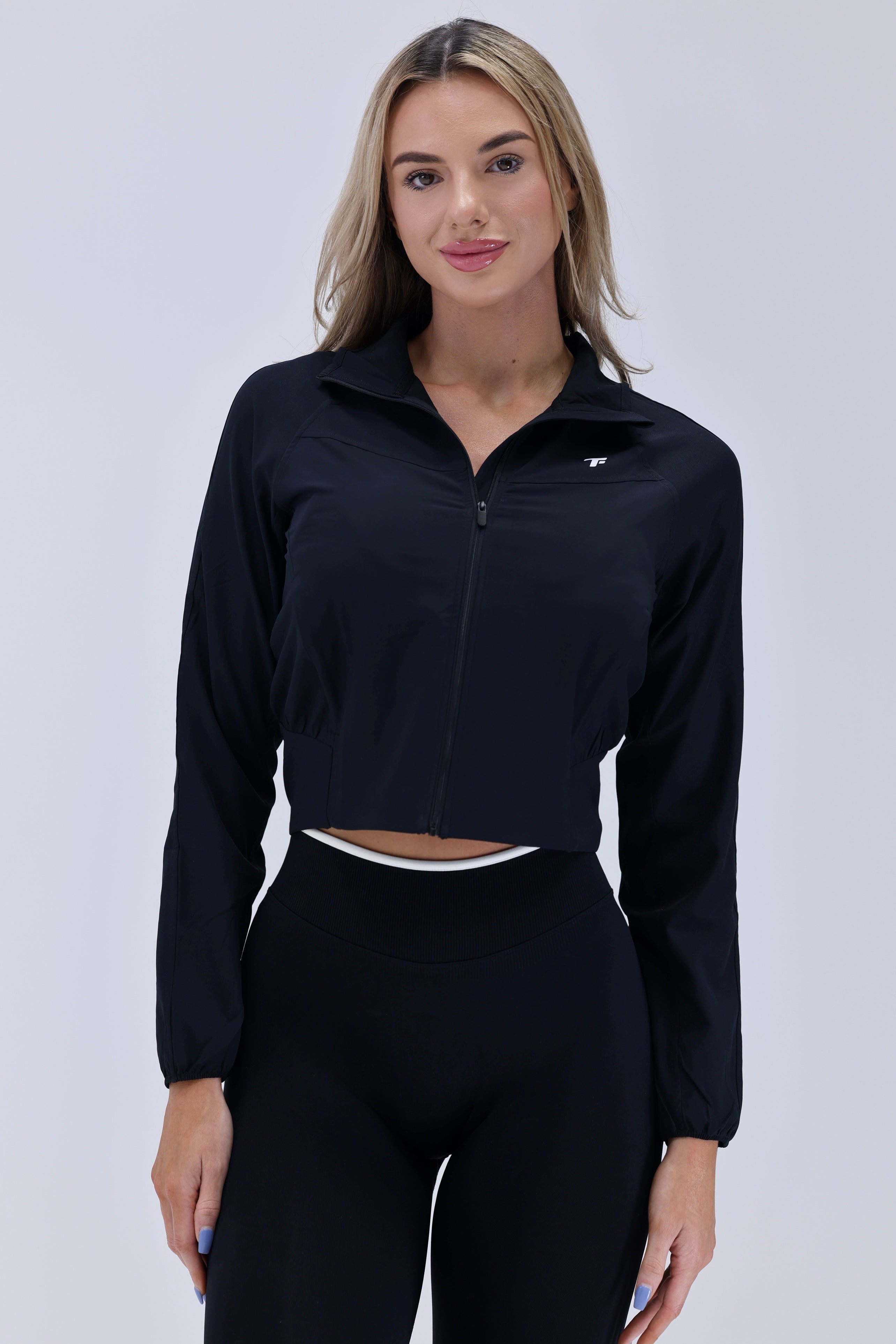 Lightweight and versatile, this cropped layer is crafted from 91% polyester + 9% spandex. Soft yet durable with just the right amount of stretch—ideal for warm-ups, cooldowns, or casual layering.