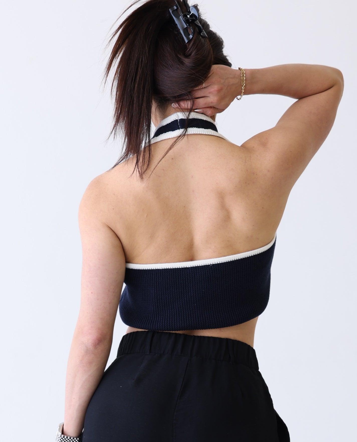 Turn heads in this Halter Sweater Vest with Contrast Edge — a modern twist on a classic silhouette. Crafted from a soft, knit fabric, this cropped vest features a flattering halter neckline that ties behind the neck for an adjustable fit. The standout contrast trim along the edges adds a bold, eye-catching touch, giving it a chic, sporty vibe. Perfect for layering or wearing solo, this versatile piece pairs effortlessly with jeans, skirts, or tailored pants for an elevated casual look.