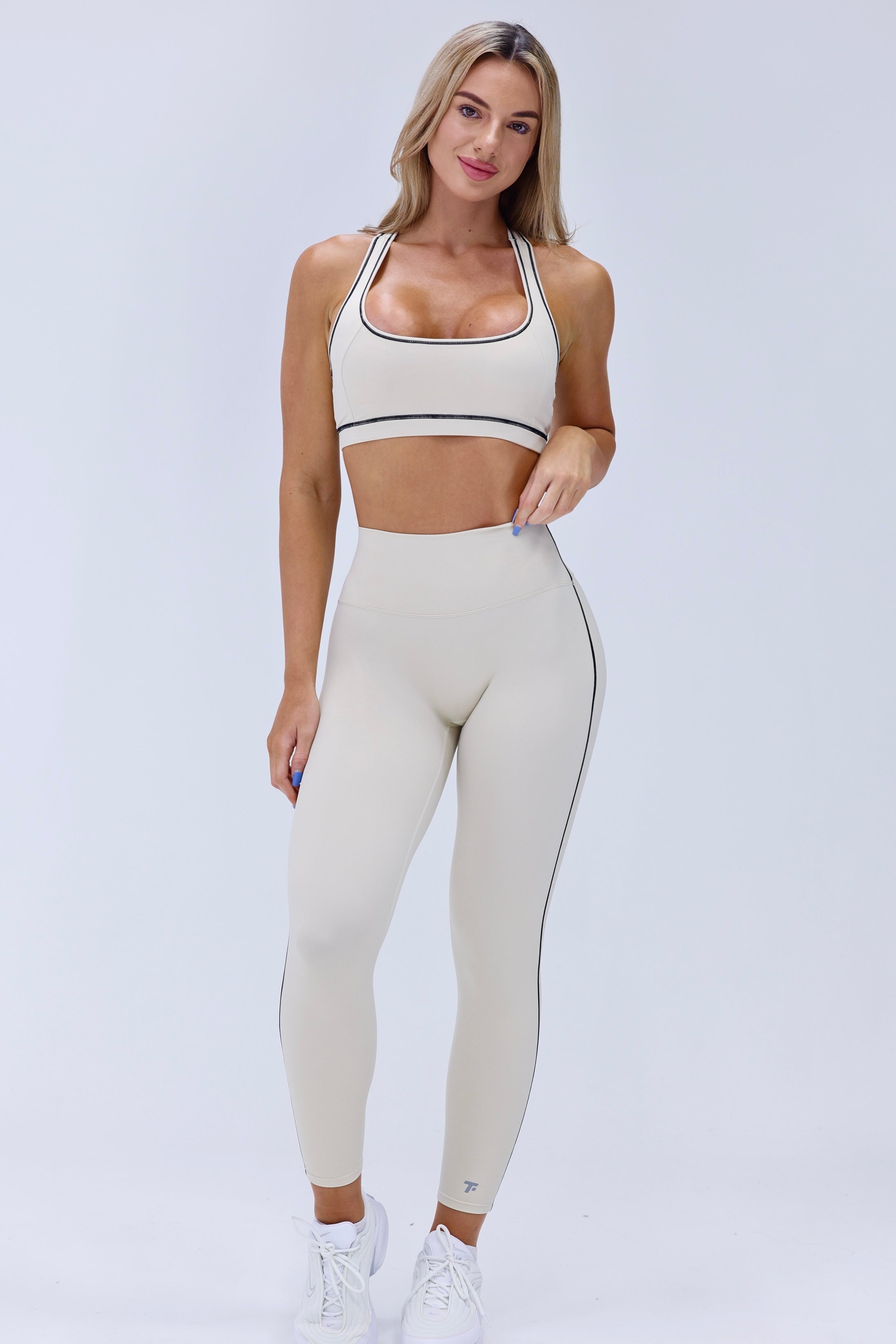 A polished take on performance. These high-rise leggings, crafted in 78% polyamide + 22% elastane, smooth and sculpt with a breathable finish that’s perfect for studio to street.