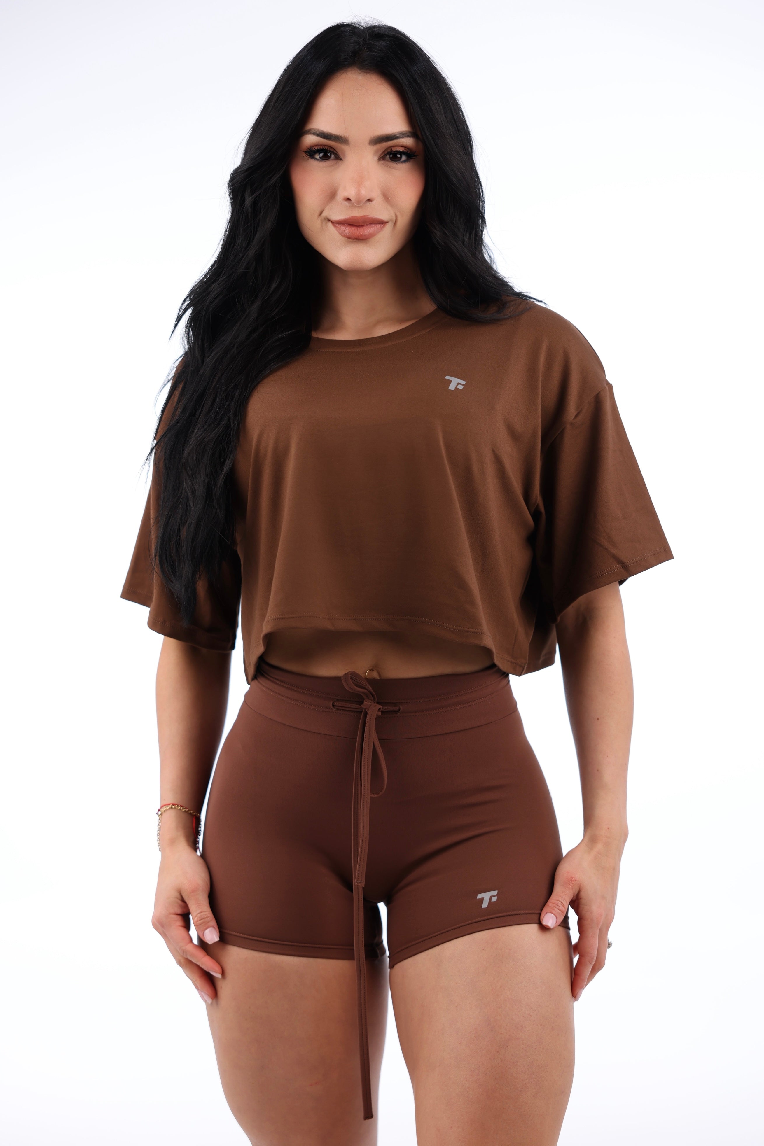 Stay effortlessly cool and confident in the TF Brown Crop Top. Made from a soft blend of 90% Polyester and 10% Spandex, it drapes comfortably while keeping a chic cropped shape. Ideal for warm-ups, cool-downs, or casual days out — this top is your go-to for layering over the Brown Flex Sports Bra.